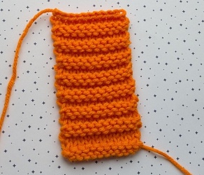 Knitted piece measures approximately 5” long (13cm) and 3” (7.5cm) wide.